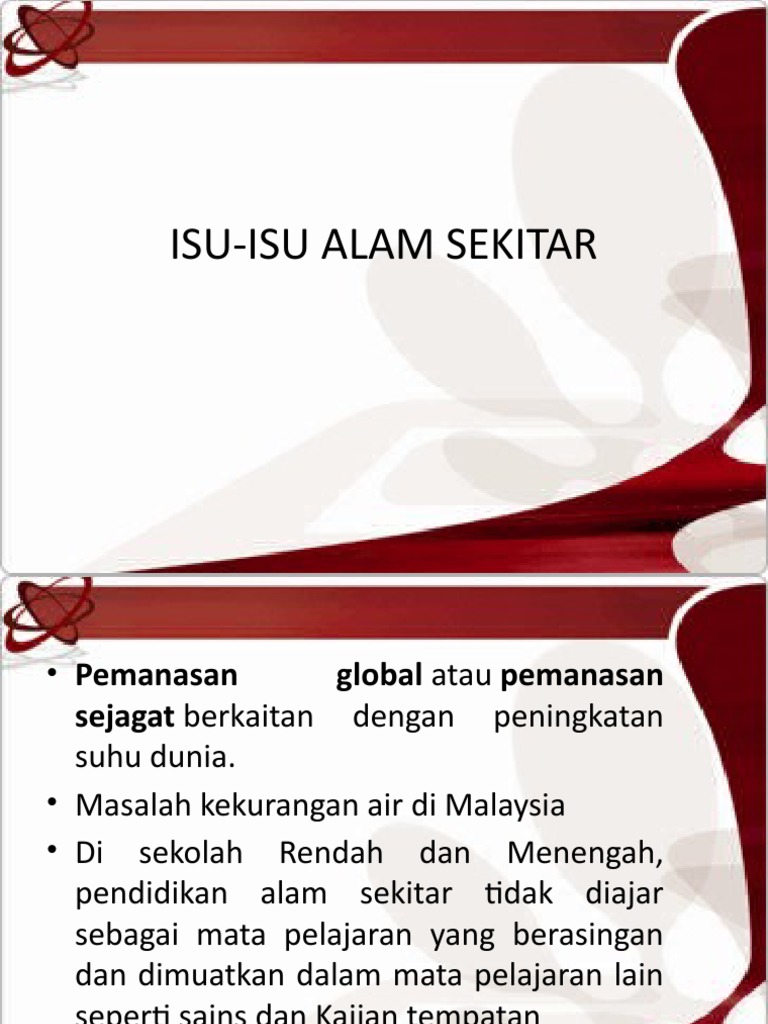 Isu Alam Sekitar Di Malaysia - Etika dan isu alam sekitar di malaysiasenarai nama ahli kumpulan 2.. Mps rampas tanah pemilik degil. Kaya dengan sumber asli tetapi masih ketinggalan dari sudut pembangunan, masa hadapan pahang sebagai kubu kuat barisan nasional (bn) harus dilihat semula. Isu pencemaran alam sekitar merupakan masalah yang menjadi liputan utama akhbar masa kini dan ianya semakin semakin serius sejak oleh itu, timbullah pelbagai isu dan masalah berkenaan kualiti alam sekitar yang semakin merosot dan diburukkan lagi dengan pelbagai kelemahan dan kekangan. Pencemaran alam sekitar telah memberi kesan yang buruk terhadap hidupan di dunia pada masa kini. Prosiding seminar kebangsaan pengurusan persekitaran 2005.