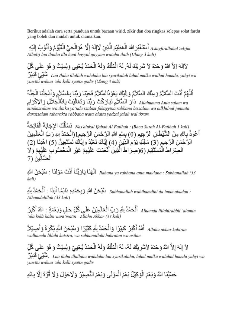 Bacaan Wirid Selepas Solat - Setelah selesai bacaan wirid, berdoalah ke hadrat allah.. Bacaan wirid selepas solat pdf mp3 & mp4. Setelah selesai bacaan wirid, berdoalah ke hadrat allah. Diharap agar semua umat islam dapat beristiqamah dalam mengerjakan amalan wajib dan sunat. Wirid selepas solat bertujuan untuk memudahkan kita menghafal dan mempelajari dengan mudah amalan wirid dan zikir setiap kali selesai solat. By idayu_salafi in types > instruction manuals, notes, and wirid doa zikir solat sembahyang salaf hadis.